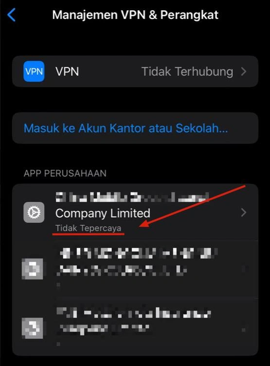 iOS kini mewajibkan pengguna untuk mempercayai sertifikat perusahaan secara manual sebelum aplikasi dapat digunakan. Berikut langkah-langkahnya: